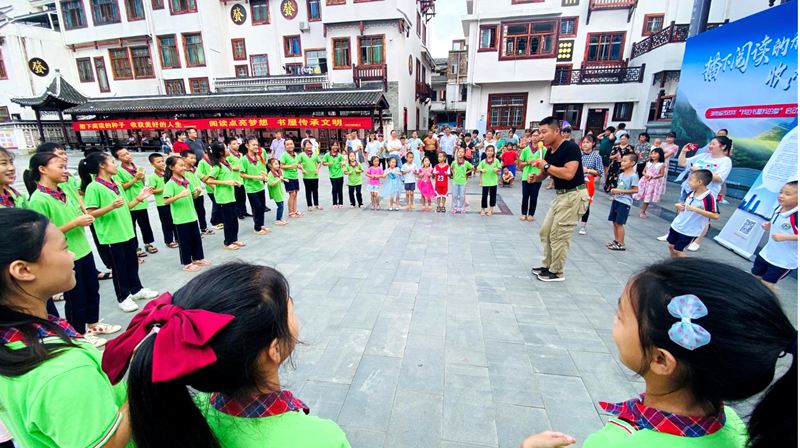 “故今日之責任不在他人,而全在我少年,少年志則國志,少年強則國強,少年富則國富……”下灌村孩子們在老師的帶領下,捧起書頁齊聲誦讀起《少年中國說》。在這充滿斗志和激情的詩句中,孩子們通過朗讀深深感受到先烈們?yōu)槊褡濯毩?、富強立下的巨大犧牲和未來期許,激發(fā)愛國情懷,做新時代、新征程路上的好少年。朗朗讀書聲不僅與下灌村優(yōu)美的農(nóng)家風光融為一體,也無不沁潤著現(xiàn)場的活動嘉賓,為農(nóng)家少年們心里播下智慧的種子。