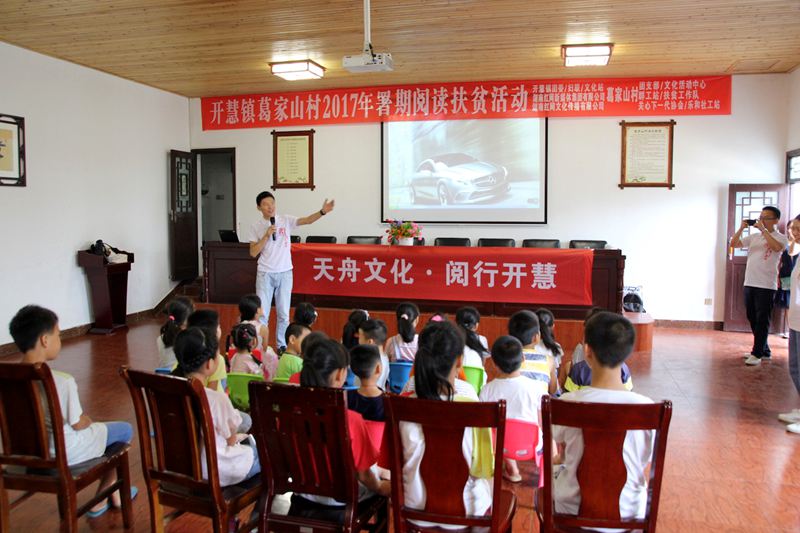 為豐富我省農(nóng)村留守兒童的暑期文化生活,推動“書香湖南”全民閱讀活動深入村組,8月15日,天舟文化積極響應(yīng)由省新聞出版廣電局發(fā)起的“書香湖南·閱行者計(jì)劃”2017年暑期閱讀扶貧志愿者活動,前往長沙縣開慧鎮(zhèn)葛家山村、開慧村開展農(nóng)村少年兒童閱讀實(shí)踐公益活動。