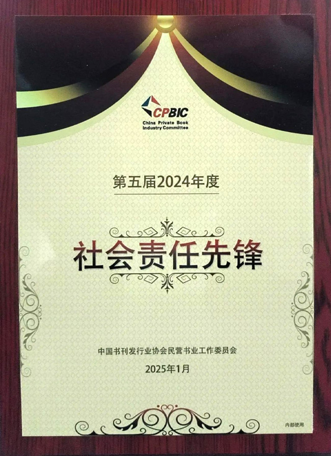 多年來,公司始終關(guān)注社會發(fā)展需要,積極履行社會責(zé)任。先后榮獲“中國文化行業(yè)品牌價值100強”“全國文化企業(yè)30強提名企業(yè)”“改革開放40年民營書業(yè)四十強企業(yè)”等榮譽。