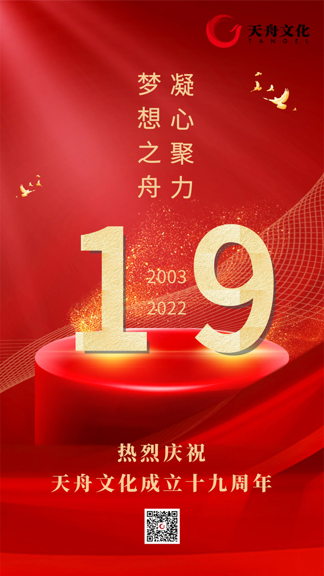 2003.8.18-2022.8.18,熱烈慶祝天舟文化成立19周年!