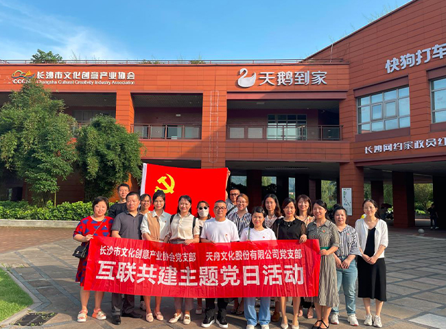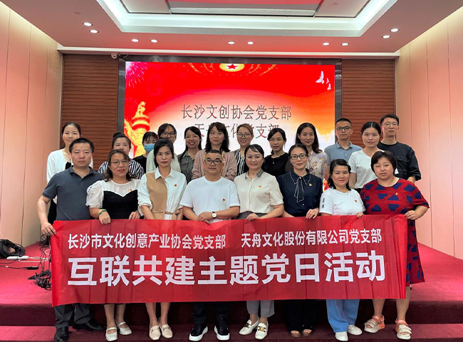 6月14日,在“七一”建黨節(jié)即將到來之際,天舟文化股份有限公司黨支部攜手長沙市文化創(chuàng)意產業(yè)協會黨支部聯合開展互聯共建主題黨日活動,雙方黨支部全體黨員、發(fā)展對象及入黨積極分子等20余人參加。