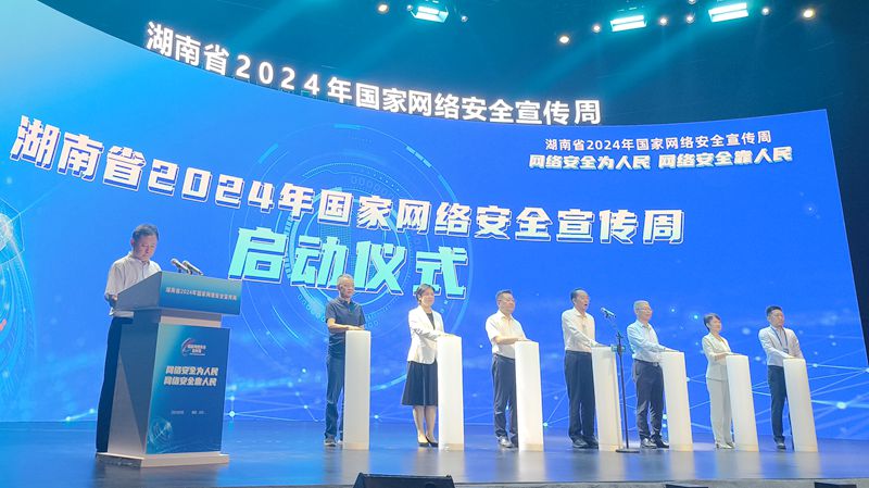 董事長(zhǎng)肖志鴻作為企業(yè)家代表和省、市、區(qū)、園區(qū)領(lǐng)導(dǎo)上臺(tái)啟動(dòng)2024年湖南省網(wǎng)絡(luò)安全宣傳周活動(dòng)